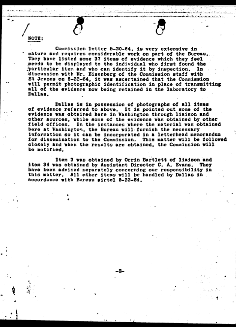 Item 3 [the fragments] was obtained by SA Orrin Bartlett of liaison and item 34 was obtained by Assistant Director C.A. Evans. They have been advised separately concerning our responsibility in this matter.[12]