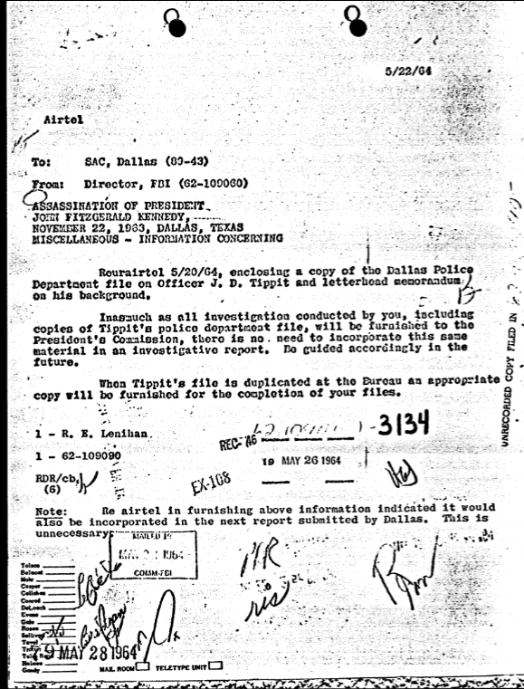 It has also been alleged that, because this airtel was sent by “SAC Dallas,” and it does not mention Bardwell Odum, Dallas Special Agent in Charge Gordon Shanklin must have conducted the interviews with Tomlinson and Wright.[18] However, this claim is inaccurate. All Bureau communications sent from Dallas were labeled “SAC Dallas” as a matter of standard FBI practice, simply indicating that the communication originated from the Dallas field office or any other field office. Moreover, it is highly unlikely that Shanklin, whose role was primarily administrative, would have been involved in conducting investigative groundwork.