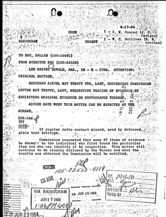 On June 17, 1964, FBI Headquarters sent a radiogram to Dallas inquiring about the status of the Commission’s request and when it would be completed.[14]