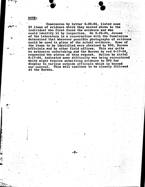 The interviews in question took place on June 2, 1964. While it is possible that Bartlett displayed photographs, retrieved the fragments from the lab, and reinterviewed the men all on the same day—or that the photograph-based interview occurred earlier—it strains credulity to believe he would omit this detail in his initial report to his superiors. Given that Dallas had requested the original versions of all major items of physical evidence, could the Bureau have been concerned that the only item handled by FBI Headquarters would also be the only one not displayed in its original form? If so, might they have adjusted their reporting to address this inconsistency?